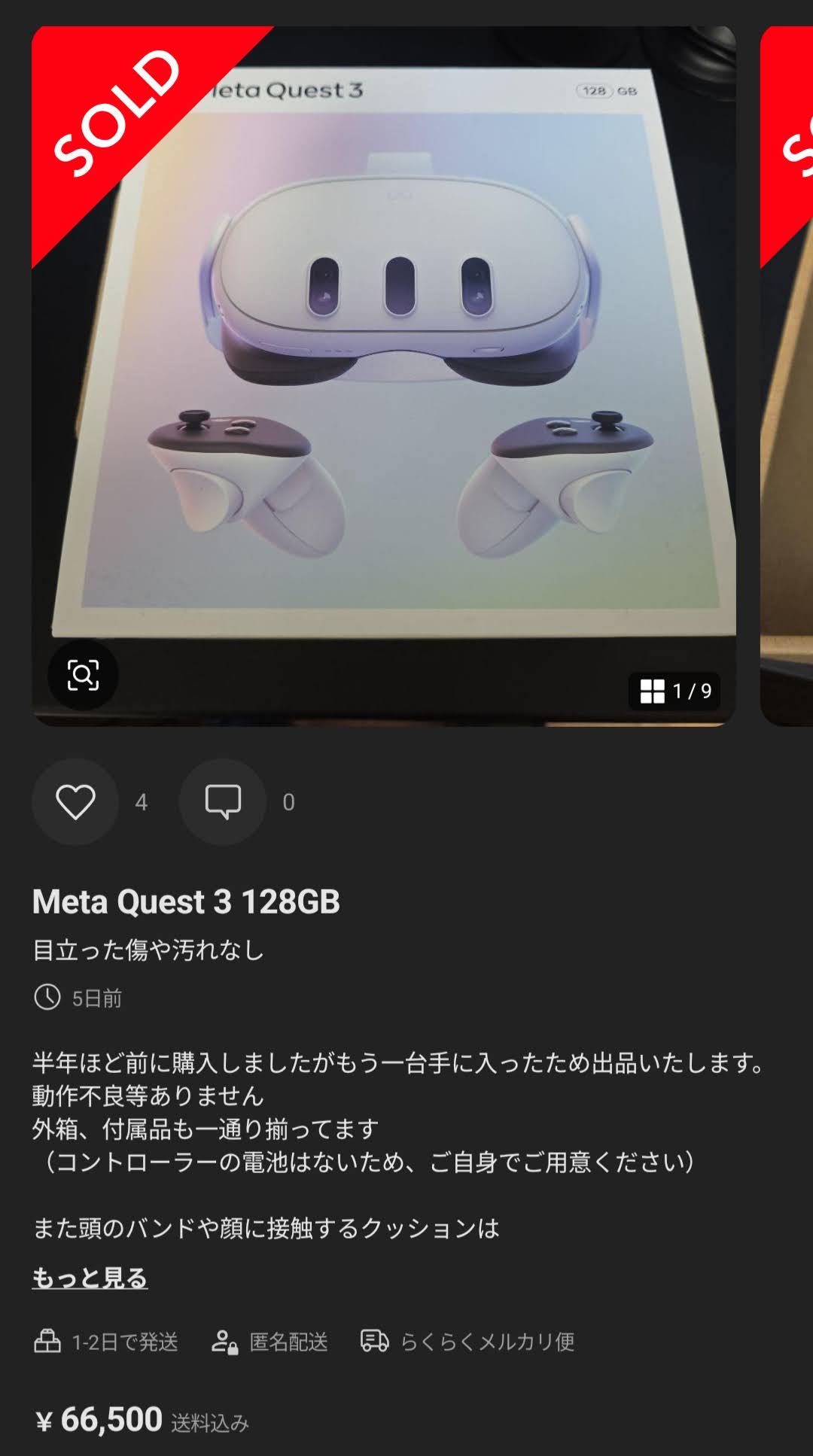 - ほぼ毎日、新しいメタクエスト3が出品される